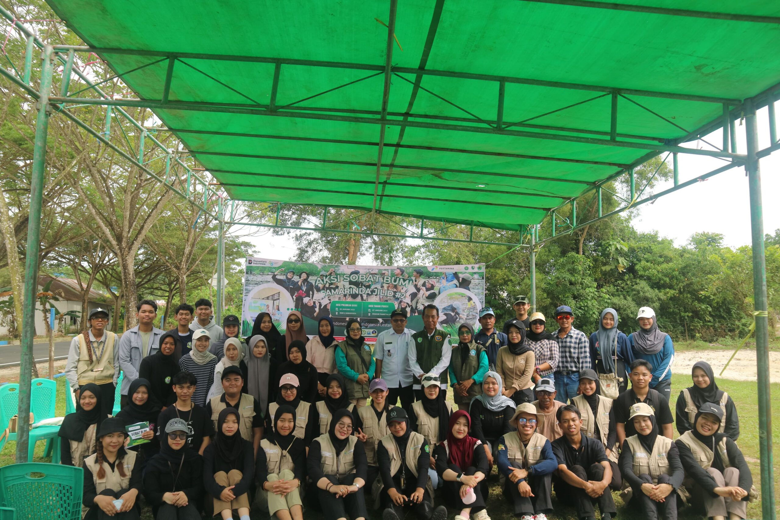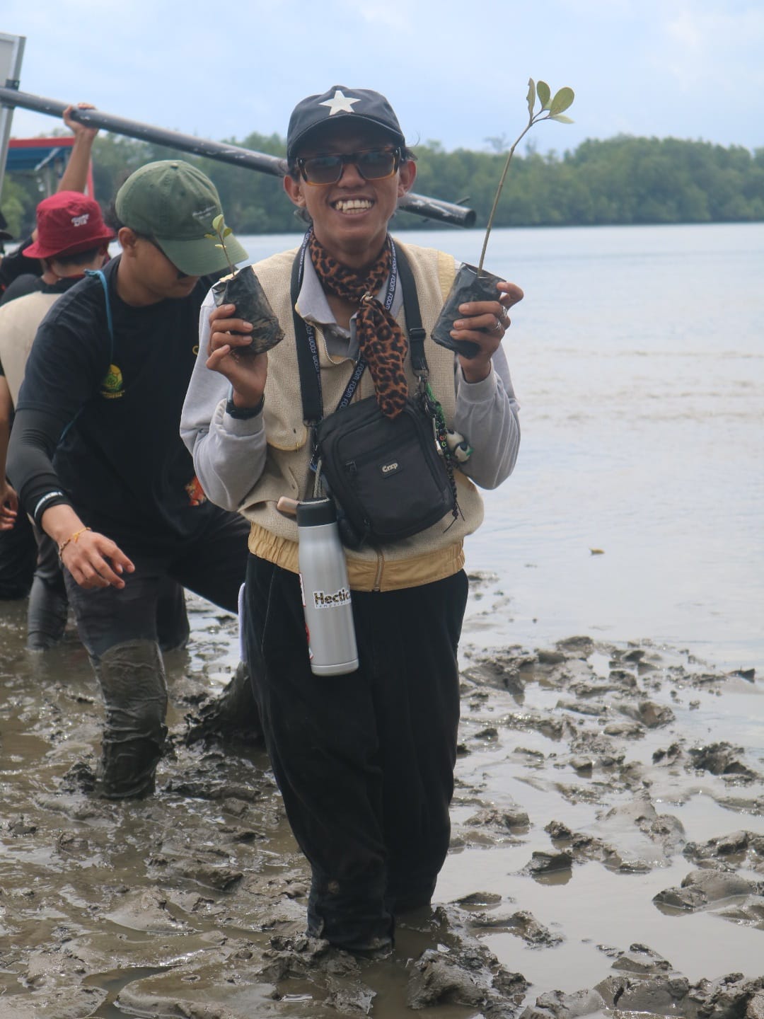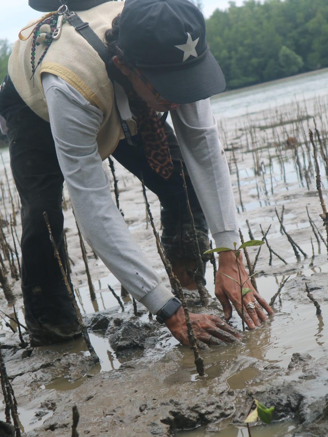 Di bawah terik matahari, satu per satu bibit mangrove ditanam di lumpur pesisir. Spanduk kegiatan yang berdiri di tengah hamparan bakau menjadi penanda semangat gotong royong para relawan, bahwa menjaga alam adalah kerja bersama yang harus dilakukan secara berkelanjutan.
